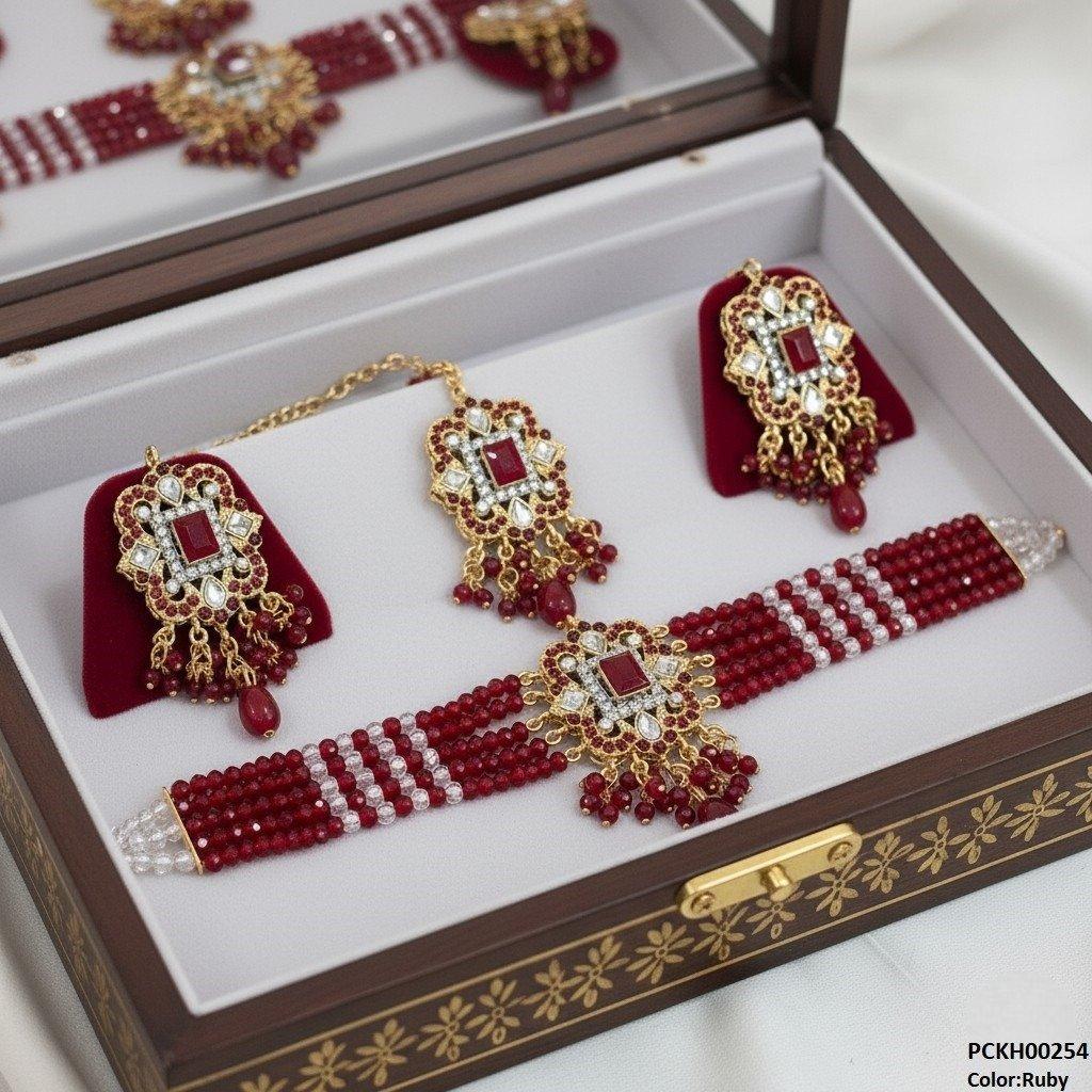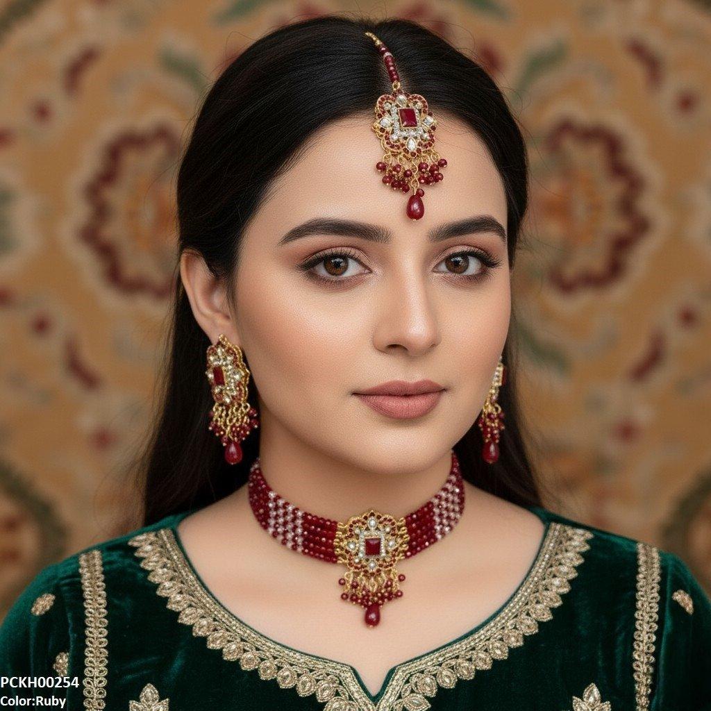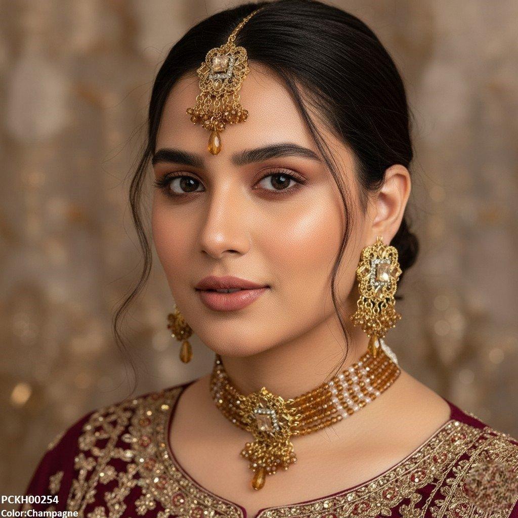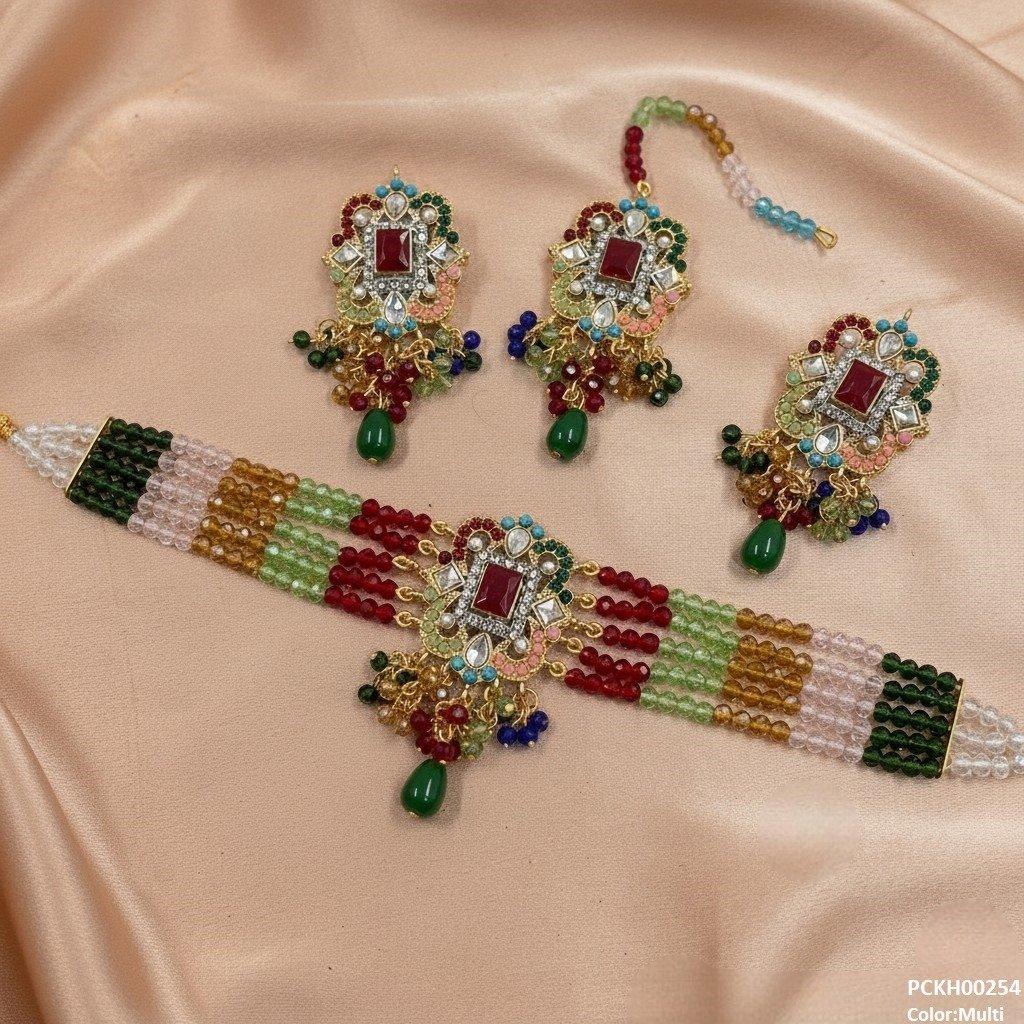 Package Include: 1x Choker set, 1x pair of Earrings , 1x Pair Of Bindi
