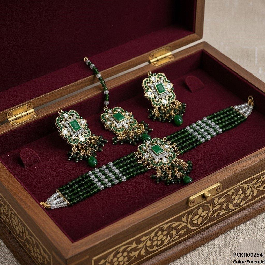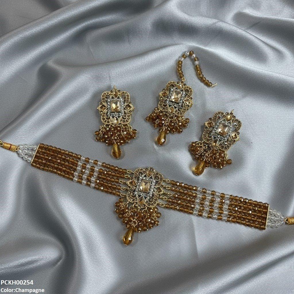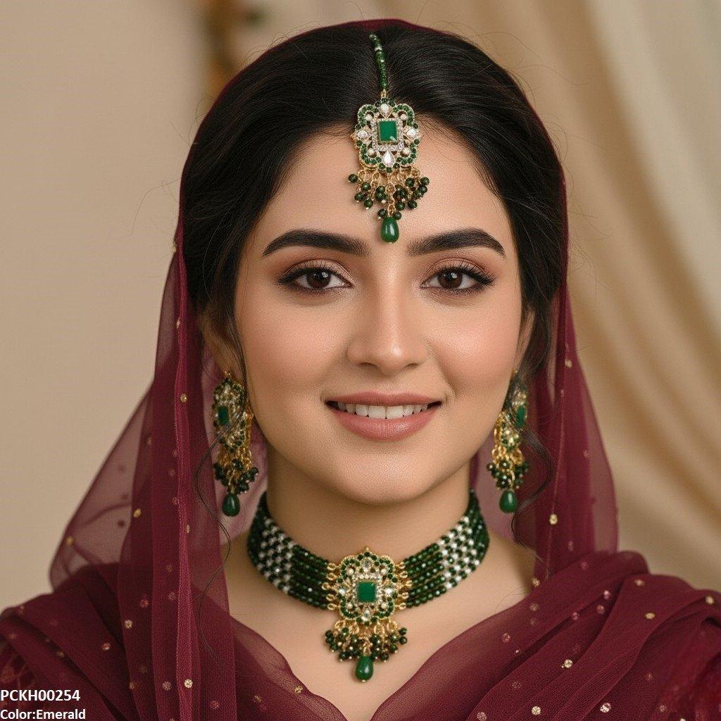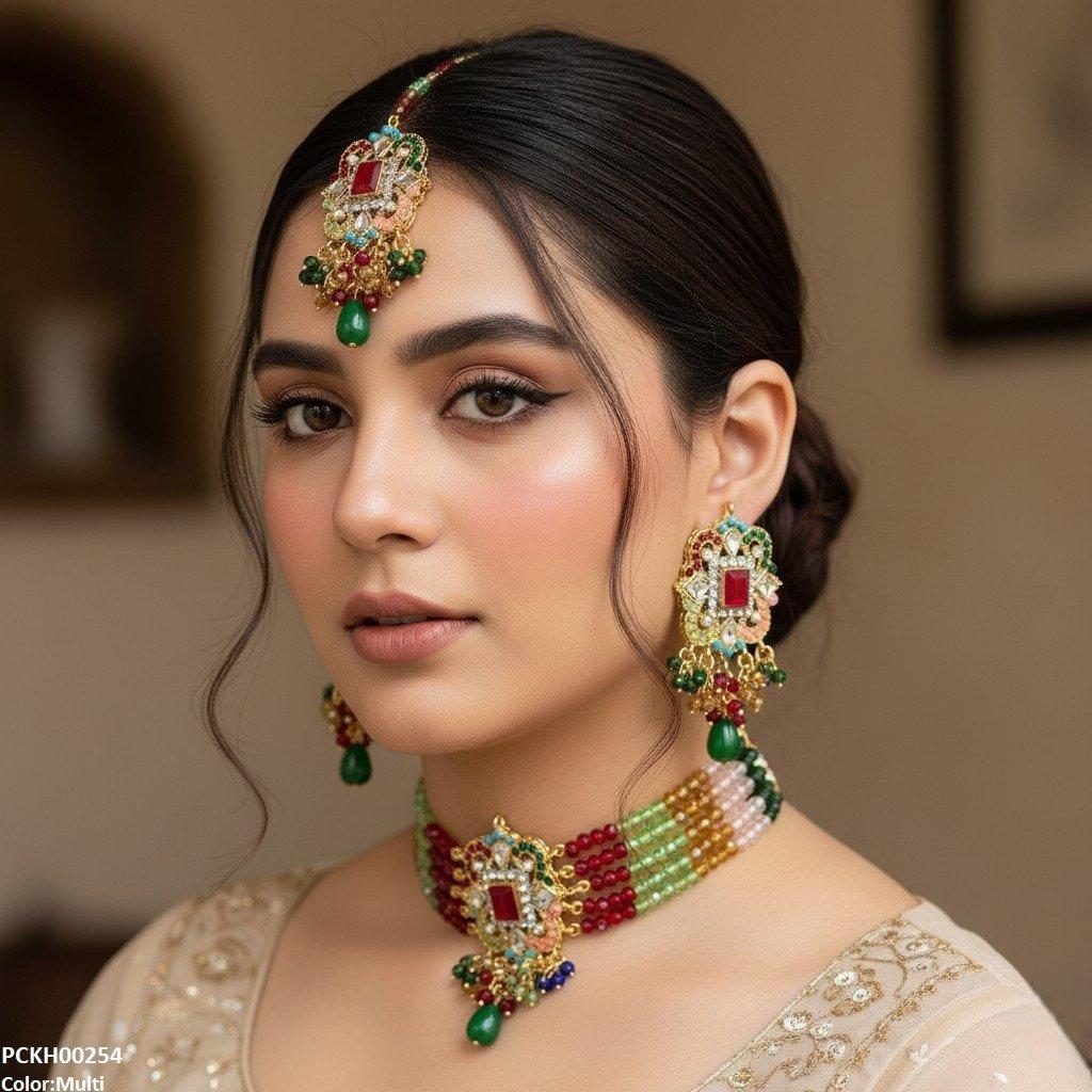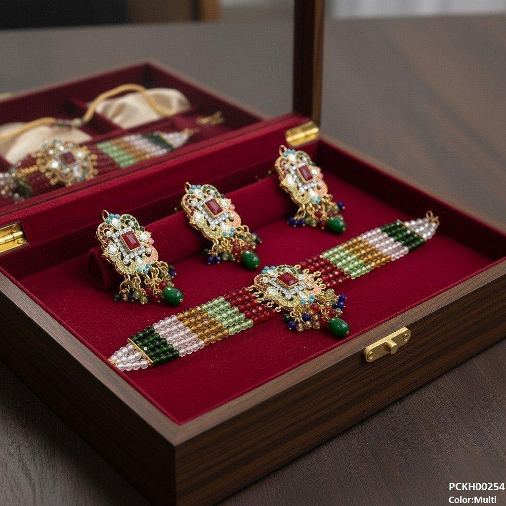 Package Include: 1x Choker set, 1x pair of Earrings , 1x Pair Of Bindi