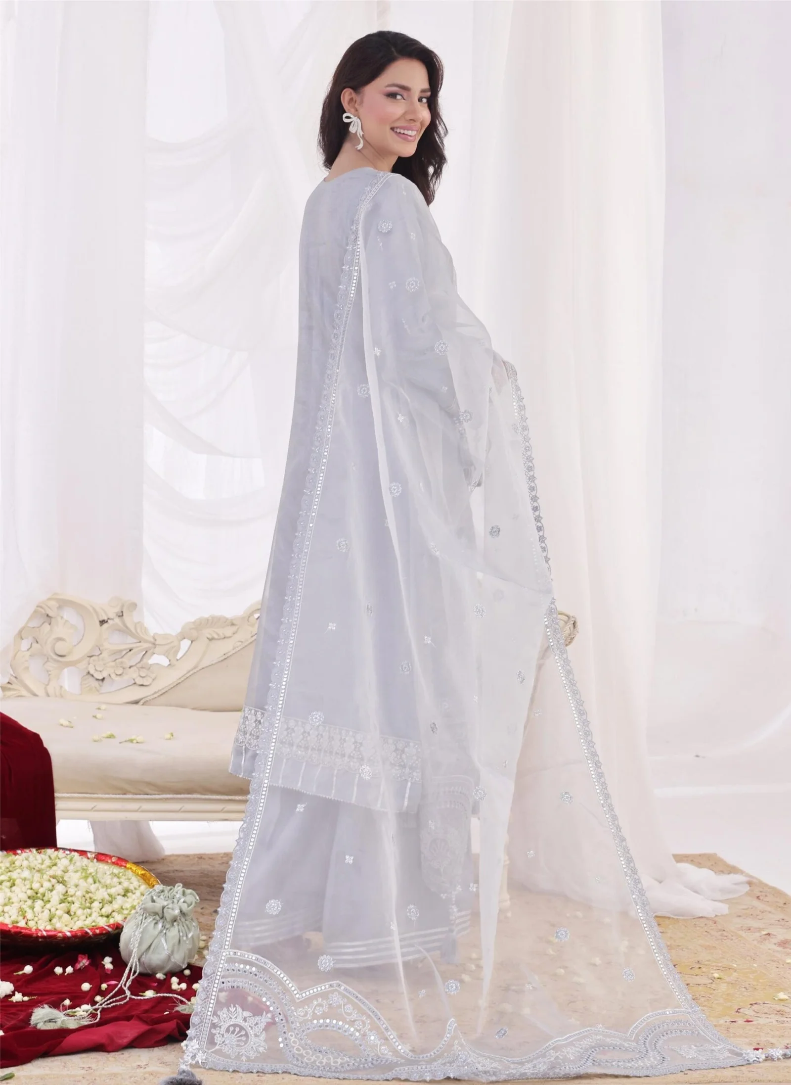• Dupatta: Ready-to-wear luxury Shisha Silk Organza.
