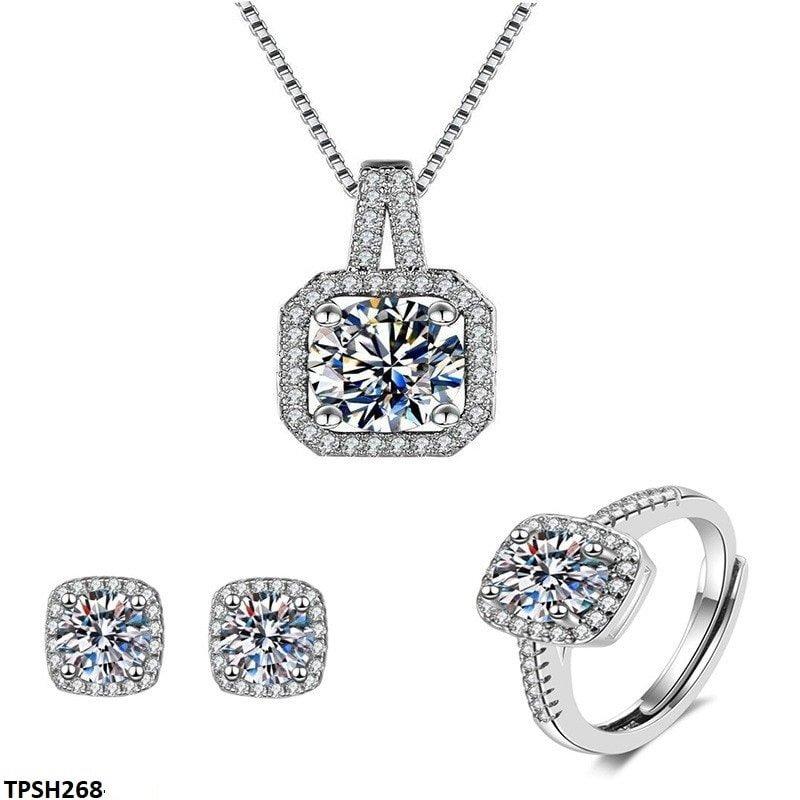Weight: 10g Pendant Size: 1cm x 1cm Tops Size: 1cm x 1cm Ring: Adjustable Gender: Women Plating: Electro Silver Plated Type: Casual/Formal/Party Package Included: 1x Piece of Pendant With Chain, 1x Pair of Tops, 1x Of Ring Packing:Packed in Polybags